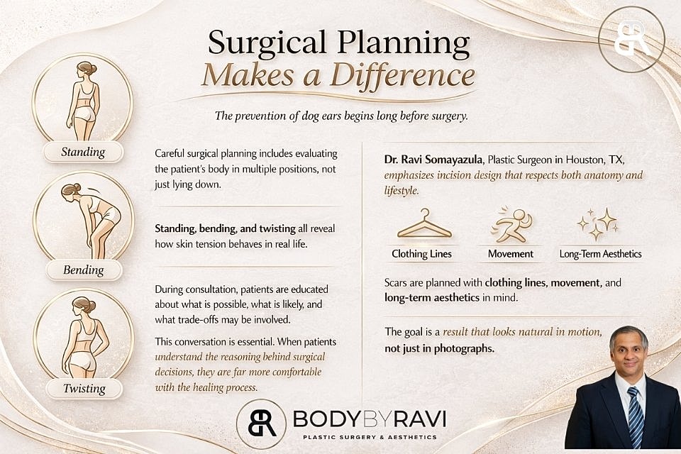 Dr. Ravi Somayazula, Plastic Surgeon in Houston, TX, emphasizes incision design that respects both anatomy and lifestyle. Scars are planned with clothing lines, movement, and long-term aesthetics in mind. The goal is a result that looks natural in motion, not just in photographs.
